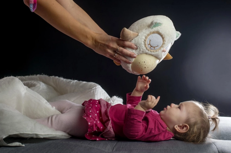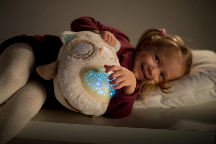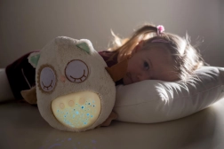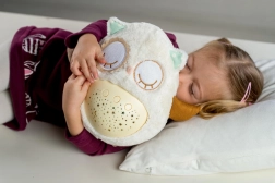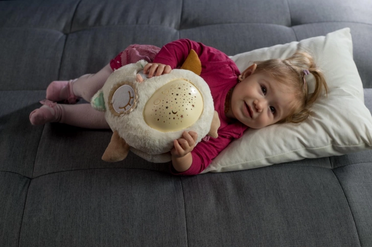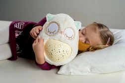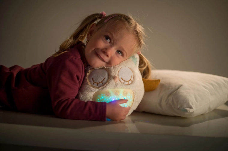 Les boutons situés sur le ventre assurent une utilisation facile, même dans l’obscurité. Grâce à son format compact, le petit hibou est idéal pour le lit comme pour les voyages. Sa matière douce et agréable invite aux câlins et aide à instaurer un rituel du soir apaisant.