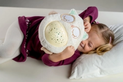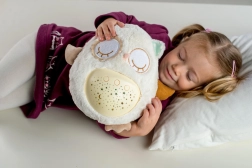 Ce doudou en peluche ultra doux associe l’étreinte chaleureuse à des fonctions intelligentes pour faciliter l’endormissement. Le hibou projette un ciel étoilé en 8 couleurs, diffuse 8 berceuses ainsi que des sons prénataux apaisants auxquels les tout-petits sont habitués dans le ventre de maman. Une fois la mélodie terminée, la lumière reste douce encore environ une minute puis s’éteint automatiquement.