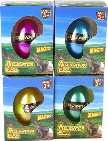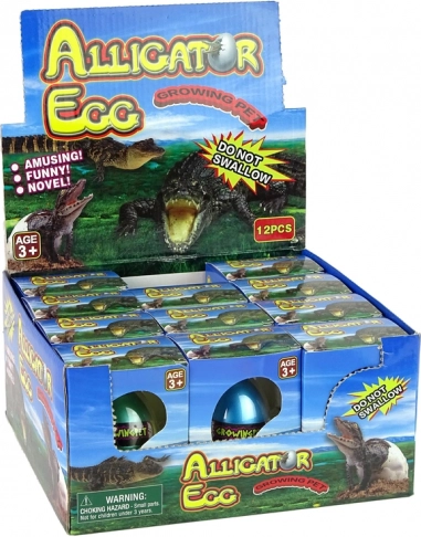 L'œuf est conçu pour être immergé dans de l'eau chaude, où il s'ouvre lentement et grandit en 24-48 heures, révélant un petit alligator. Après 72 heures, l'alligator est transféré dans un récipient plus grand où il continue de croître et de se développer.