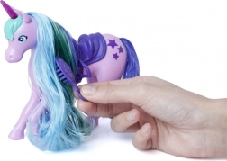 La longue crinière multicolore de la licorne Star se coiffe facilement avec la brosse incluse et se prête à de nouvelles coiffures chaque jour.