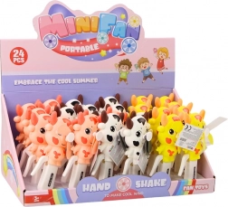 Découvrez notre adorable mini moulin à vent en forme de vache, qui vous ravira et vous rafraîchira pendant les journées chaudes ! Cette astuce unique est actionnée manuellement en pressant la poignée blanche, ce qui la rend extrêmement facile à utiliser et totalement sûre pour les enfants. Le moulin à vent est disponible en trois couleurs charmantes : jaune, blanc et rose, vous pouvez ainsi choisir votre préférée.
