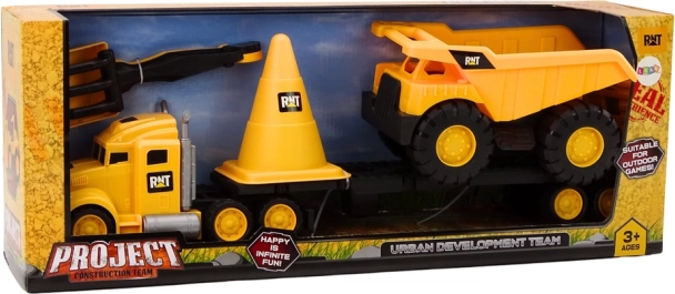 Découvrez un set de construction amusant pour petits bâtisseurs : tracteur jaune avec semi-remorque, benne basculante, grand cône et outils pour le sable. Fabriqué en plastique de qualité, idéal pour jouer à la maison comme en extérieur. Encourage la créativité, le développement de la motricité fine et l’imagination, et offre une construction robuste et un nettoyage facile.