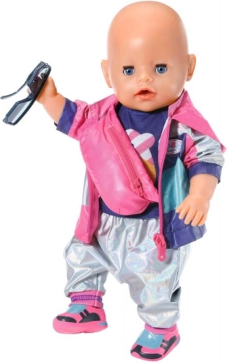 Un ensemble stylé pour petites cyclistes qui transforme chaque sortie en plaisir. Il comprend un t-shirt, des chaussures antidérapantes, une banane rose et des lunettes de soleil pour la poupée BABY born 43 cm. Facile à enfiler, il favorise le jeu créatif et complète parfaitement chaque tenue pour les excursions.