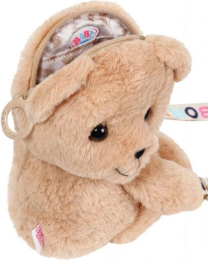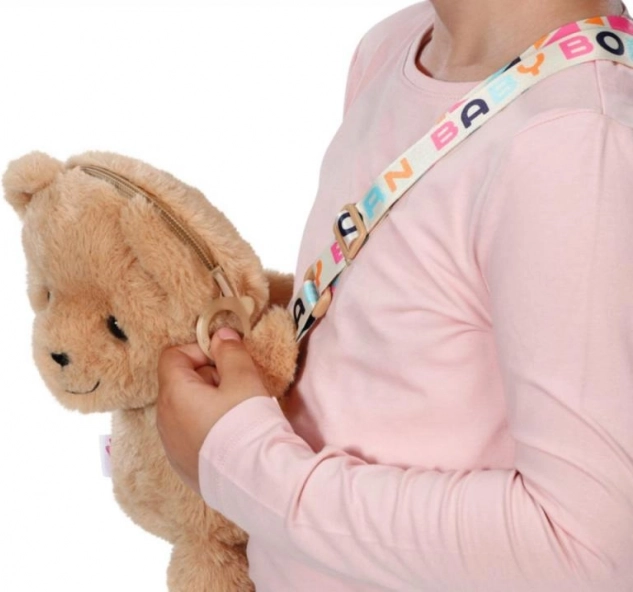 L’ourson est fabriqué dans une peluche moelleuse, agréable au toucher. La bandoulière colorée avec l’inscription BABY born donne au sac un look ludique et se porte confortablement par les enfants.