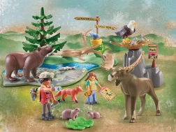 - Riche équipement : 2 figurines humaines (homme env. 7,5 cm, fille env. 5,25 cm), grizzli, pygargue à tête blanche, élan, renard, 2 marmottes, 3 harengs, oiseau, base avec rivière, conifère, panneau directionnel, appareil photo, jumelles.