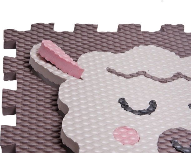 Le puzzle en mousse à motif d’agneau, en coloris marron foncé, est idéal pour les salles de jeux, chambres d’enfants et salons. Sa surface texturée assure une démarche sûre, amortit les chocs et protège du froid du sol. Les pièces à verrous ajourés s’assemblent avec précision et permettent de composer rapidement une surface de jeu plus vaste.