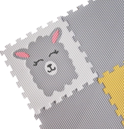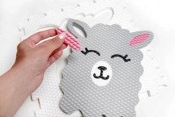 Ce tapis puzzle en mousse de couleur blanche avec un motif de lama amical adoucit n’importe quel coin pour enfants. Les pièces s’assemblent facilement pour créer en un rien de temps une surface de jeu sûre et moelleuse, qui protège du froid et des petites chutes.