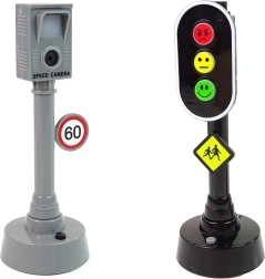 Avec les panneaux routiers, les enfants peuvent créer leurs propres routes et zones sur lesquelles faire rouler leurs voitures. Une cabine radar est également incluse pour signaler les excès de vitesse.