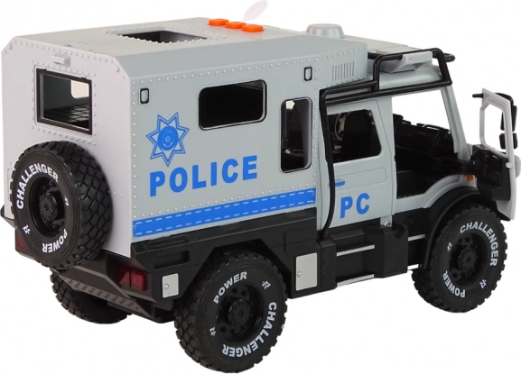 Grâce aux portes avant ouvrantes, les enfants peuvent explorer l’intérieur du véhicule et créer leurs propres scénarios. Les effets sonores et lumineux ajoutent à l’excitation ! Les phares LED à l’avant s’allument en appuyant sur l’un des trois boutons sur le toit, tandis que les sons d’alarme renforcent le réalisme.