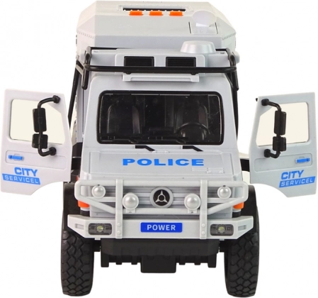 Le véhicule tout-terrain de service municipal est réalisé à l’échelle 1:14, ce qui en fait un modèle extrêmement détaillé. Il est équipé d’une propulsion à rétrofriction – tirez-le simplement en arrière puis relâchez-le pour qu’il parte à toute vitesse vers l’avant.