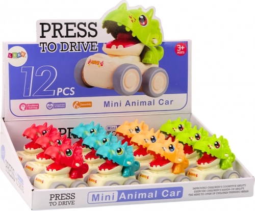 Adorable petite voiture à motif de triceratops avec une propulsion par pression amusante – il suffit de presser la tête du dinosaure et la voiture part d’elle‑même. Fabriquée en matière souple et agréable au toucher, sûre pour les enfants. Dimensions compactes idéales pour les petites mains d’enfants. Disponible en 4 couleurs : orange, rouge, vert et bleu.