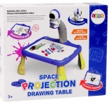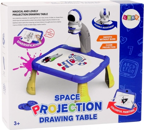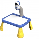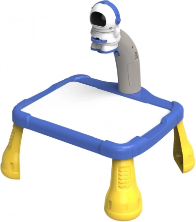 Le projecteur en forme d’astronaute sert à projeter des images sur le papier, permettant aux enfants de suivre facilement et de dessiner des motifs spatiaux tels que des planètes, des étoiles, des fusées et des astronautes. La table est équipée de pieds jaunes stables et d’une surface bleue spacieuse pour dessiner.