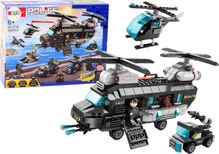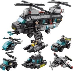 Le set permet de créer jusqu’à 19 combinaisons différentes de véhicules d’unités spéciales. Les enfants peuvent ainsi profiter d’une créativité sans limites et d’heures de divertissement. Nous pouvons construire un hélicoptère de services spéciaux, multifonctionnel – idéal pour les missions de sauvetage et les opérations spéciales. Un avion de combatrapide et maniable, équipé des technologies de combat les plus récentes.