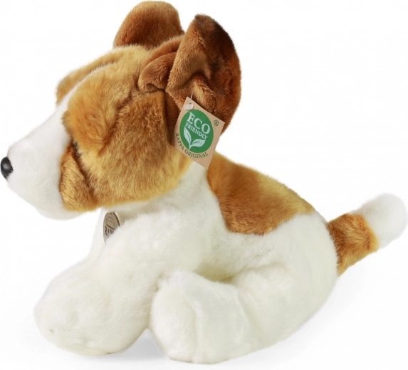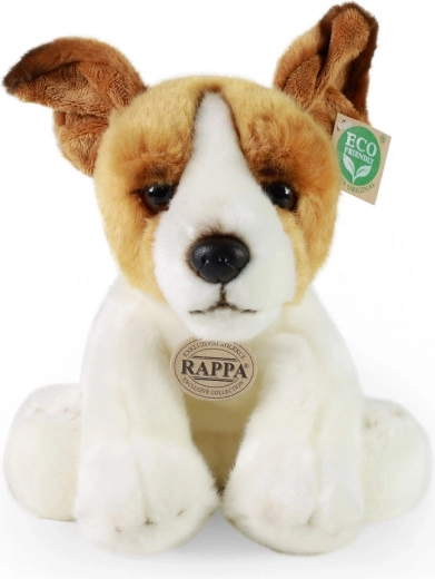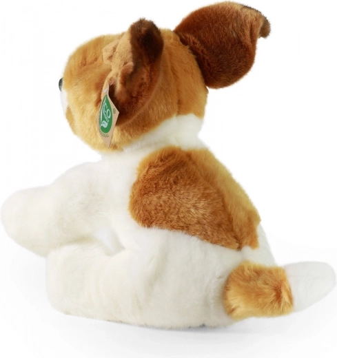 Le chien en peluche a des traits réalistes qui lui donnent l'apparence d'un vrai Jack Russell terrier.
