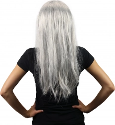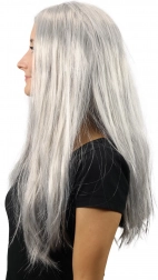 perruque de sorcière argentée aux longs cheveux