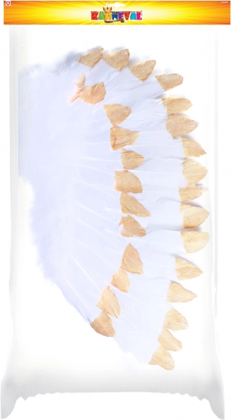 - Look luxueux grâce aux plumes blanches et aux paillettes dorées.
