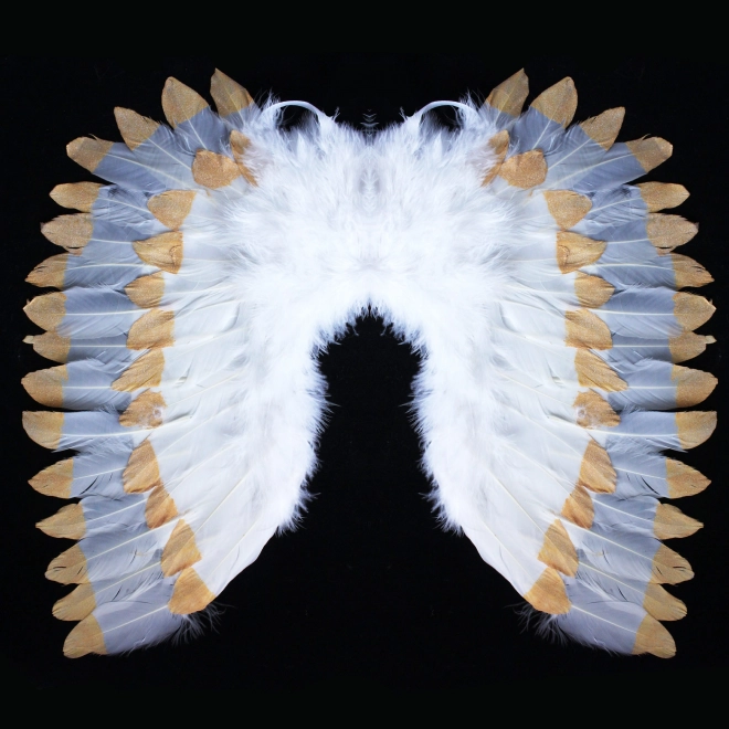Élégantes ailes d’ange en plumes d’un blanc immaculé avec de paillettes dorées, parfaites pour compléter un costume d’ange. Avec des dimensions d’environ 67 × 46 cm, elles offrent un effet marquant et un port confortable pour le carnaval, la Saint‑Nicolas et les soirées à thème.
