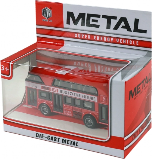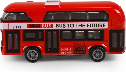 Découvrez le charme des rues classiques de Londres avec ce bus rouge à impériale au format de poche. La carrosserie en métal est complétée par des détails en plastique et des roues fluides pour une conduite en douceur. Le mécanisme à rétrofriction fait avancer le bus automatiquement après l’avoir tiré vers l’arrière.