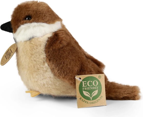 Ce moineau en peluche fait partie de la collection exclusive de RAPPA, axée sur les produits éco-responsables. Le jouet est fabriqué en peluche douce et de haute qualité, et rembourré avec un matériau issu de bouteilles PET recyclées. Il soutient ainsi une consommation durable et contribue à la protection de l’environnement.