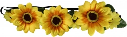 Ce bandeau est orné de trois grandes fleurs jaunes qui attirent l'attention et ajoutent fraîcheur et originalité à votre apparence. Le bandeau est confortable grâce à son attache en caoutchouc qui assure un port sûr et confortable toute la journée.