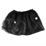 Le costume comprend une jupe tutu noire ornée d’un motif toile d’araignée, offrant un look authentique idéal pour les fêtes à thème.