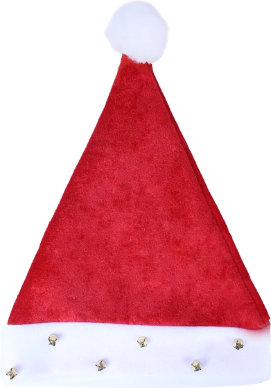 Chapeau de Noël élégant avec bordure blanche, décoré de grelots et d'un pompon. Idéal pour les fêtes de Noël.