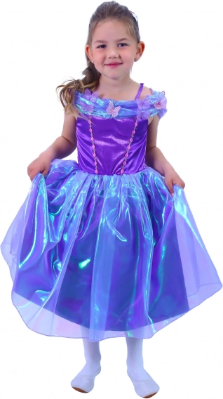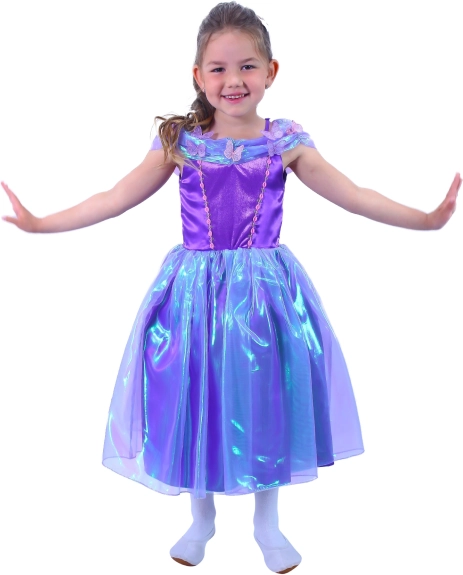 Ce costume de princesse violet transformera chaque fillette en vedette de la fête. Des matières fines et scintillantes, des détails floraux et papillons, ainsi qu’une jupe légère à étages soulignent un look féerique, confortable à porter toute la journée.