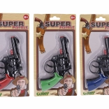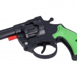 Revolver à capsules pour enfants avec la possibilité d'effectuer jusqu'à 8 tirs, idéal pour les petits cowboys. Disponible en trois couleurs selon les préférences.