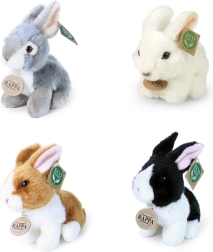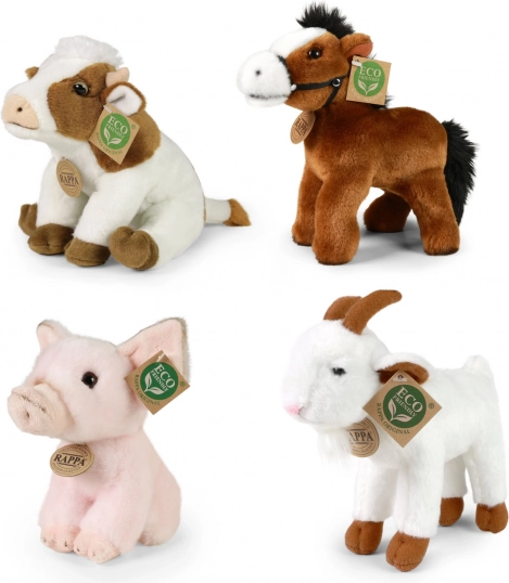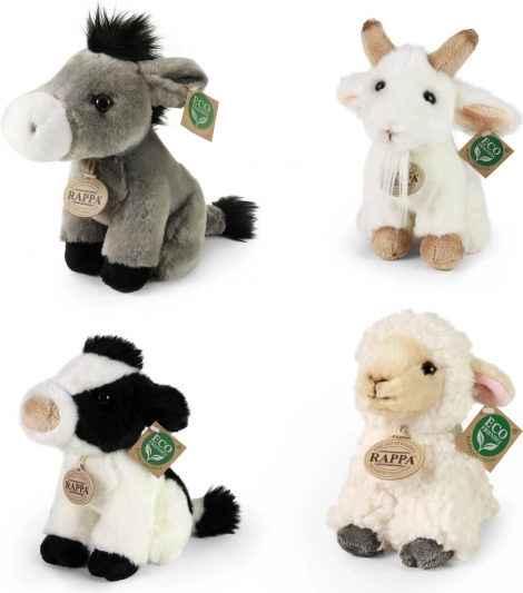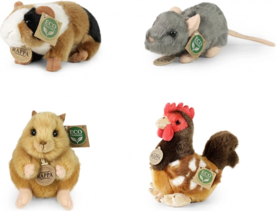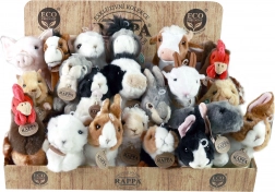 Un présentoir de vente élégant avec une collection d’animaux domestiques en peluche de la marque RAPPA, apprécié pour sa qualité de fabrication et son respect de la nature. Chaque peluche est rembourrée avec des bouteilles PET recyclées, agréable au toucher et conforme aux normes de sécurité strictes pour les plus petits.