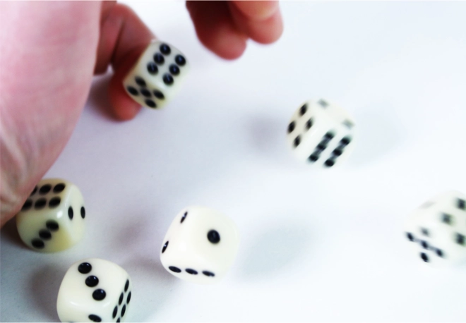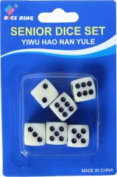 - Chaque dé a une taille standard et des points noirs bien visibles.