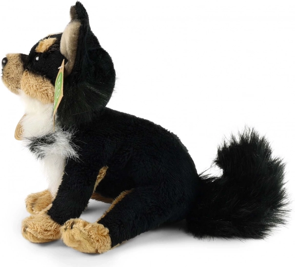 Adorable chihuahua en peluche de 15 cm qui ravira enfants et adultes. Fabriqué en peluche de haute qualité, toute douce, avec une finition réaliste, un travail artisanal et un rembourrage écoresponsable à partir de bouteilles PET recyclées. Parfait comme premier doudou pour les tout-petits – sécurisé dès 0+.