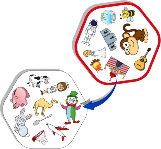 Les joueurs se relaient pour trouver et annoncer le plus rapidement possible la correspondance entre deux cartes de jeu. Le jeu contient 72 cartes et 64 symboles, offrant d'innombrables possibilités et un divertissement sans fin.
