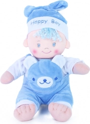 La tenue avec ourson et le bonnet portant l’inscription « Happy Boy » donnent à la poupée une expression amicale que les enfants adorent.