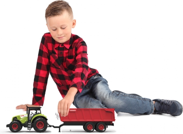 Ce tracteur en plastique, détaillé, avec lumière et son, offre aux enfants une expérience réaliste des travaux à la ferme. Grâce à l’inertie, il démarre facilement et la remorque rouge détachable élargit les possibilités de jeu à la maison comme à l’extérieur.