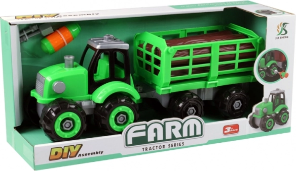 Découvrez le tracteur vert à visser avec remorque à bois, qui allie divertissement et apprentissage. Grâce à un système de vissage simple, les enfants peuvent démonter et remonter le véhicule eux-mêmes, apprendre à utiliser des outils et exercer leur patience ainsi que leur coordination.