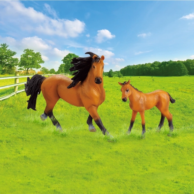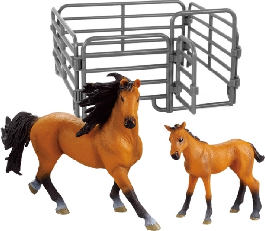 Profitez de moments parfaits avec le set cheval et poulain de couleur brune à crinière sombre. Ce set comprend un enclos, idéal pour tous les amoureux des chevaux et faisant partie de la collection populaire Ma petite ferme.