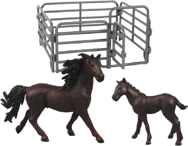 Enrichissez votre collection de jouets avec ce magnifique ensemble de chevaux avec enclos. La figurine du cheval et du poulain a un aspect réaliste et par son design ravit tous les âges. Le pack contient :