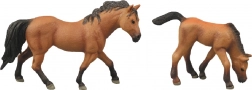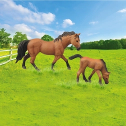 Cet ensemble comprend deux chevaux en plastique - un cheval adulte et un poulain, idéal pour des fins éducatives et décoratives.
