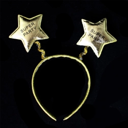 Serre-tête de carnaval avec l’inscription SUPER PARTY, un accessoire stylé pour toute fête, qui attire l’attention grâce à ses petites étoiles dorées.