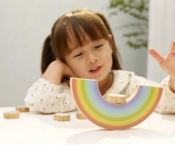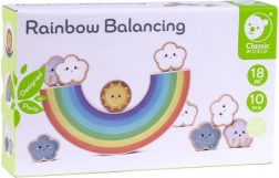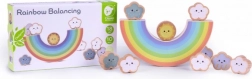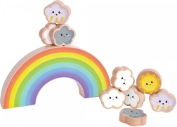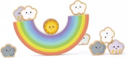 Ce coloré arc-en-ciel en bois à sept arches sert de base basculante sur laquelle les enfants empilent les nuages et le petit soleil. Le jeu développe la patience, l’équilibre et la pensée logique, tout en offrant d’innombrables possibilités de construction. Grâce à ses bords lisses et à son bois résistant, il est idéal pour un usage quotidien.