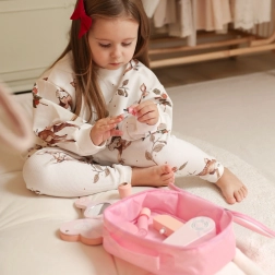 Ce set de maquillage pour enfants dans une adorable petite trousse rose propose jusqu’à 12 accessoires en bois soigneusement réalisés. Les enfants peuvent « se maquiller », se coiffer et « sécher » leurs cheveux, en imitant les adultes d’une manière totalement sûre et pleine de fantaisie. Grâce à ses dimensions compactes, l’ensemble est idéal à la maison comme en voyage.