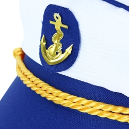 La combinaison classique de blanc et de bleu marine avec tressage doré et ancre souligne le caractère de capitaine et garantit que vous serez remarqué.