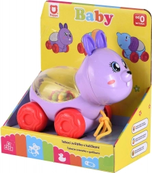 Ce joyeux lapin à tirer est un excellent compagnon pour les petits explorateurs. Il suffit de tirer sur la ficelle et les billes colorées à l’intérieur se mettent à sautiller, ce qui motive les enfants à bouger et développe leur coordination. Sa construction robuste et ses roulettes lisses garantissent une glisse fluide sur différentes surfaces.