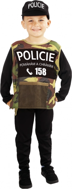 Transformez votre enfant en véritable héros avec ce costume de policier comprenant une combinaison noire, un gilet camouflage avec l’inscription POLICIE et une casquette. Idéal pour les enfants de 4 à 6 ans.