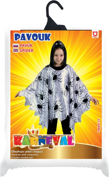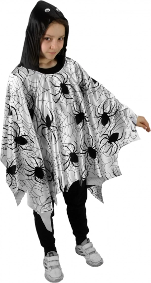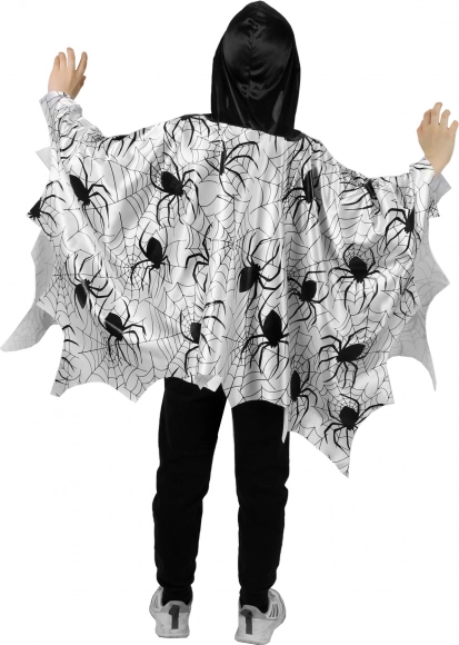 Vous cherchez un costume facile et spectaculaire pour enfants ? Cette cape/poncho légère avec un imprimé noir d’araignées et de toiles sur fond blanc attire le regard au premier coup d’œil. Sa coupe ample s’enfile par la tête et permet une liberté de mouvement totale lors des jeux, des danses et des défilés.