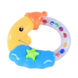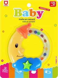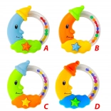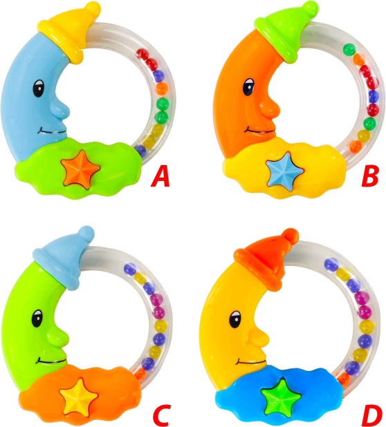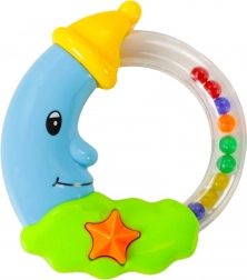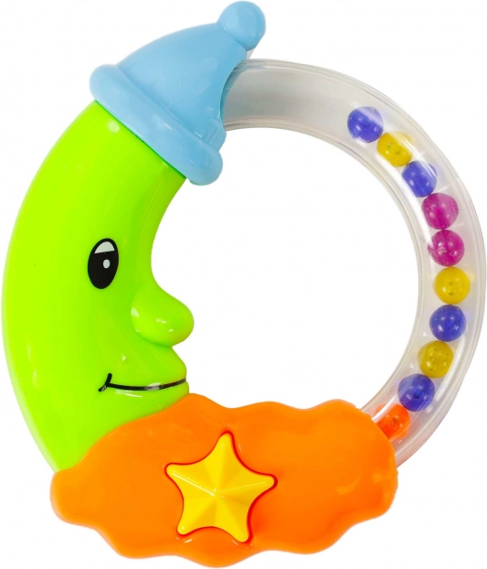 Ce hochet coloré en forme de lune souriante est le jouet idéal pour les plus petites mains. L’anneau transparent avec des billes colorées produit, en mouvement, un son agréable qui capte l’attention du bébé et stimule sa curiosité naturelle. Les couleurs contrastées et le design adorable amusent tout en contribuant au développement des sens.