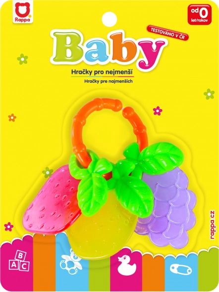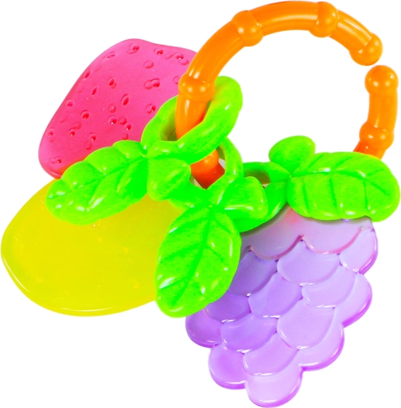 Ce hochet/anneau de dentition aux motifs fruités captive les enfants par ses couleurs vives et sa texture agréable, qui masse les gencives et aide pendant la poussée des dents. Sa forme pratique favorise une prise naturelle et le développement de la motricité fine.