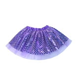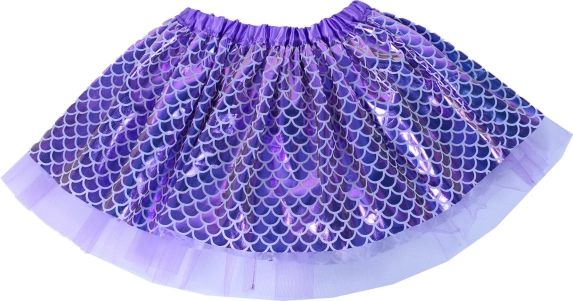 Jupe violette à motif d’écailles avec taille élastique, idéale pour un habillage facile et un port confortable.