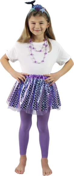 Ce costume est complété par un serre-tête stylé au motif marin, idéal pour les spectacles de danse, les carnavals ou le jeu quotidien des petites sirènes. La longueur de la jupe est d’environ 28 cm, garantissant confort et liberté de mouvement.