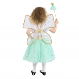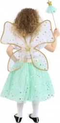 Un bel ensemble pour les petites fées ! Comprend une jupe en tulle verte avec impression d'étoiles dorées, des ailes assorties et une baguette magique.